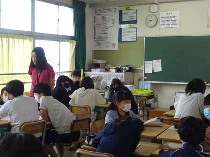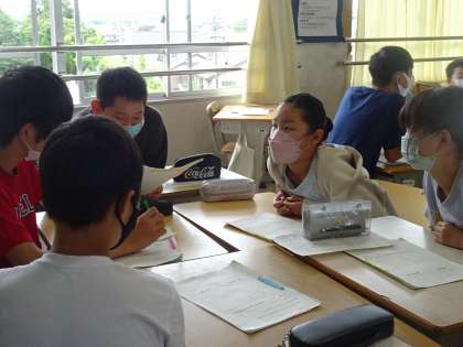 「話し合って考えを深めよう」 通学団はあった方がよいかない方がよいかについての意見や根拠をグループで話し合いました。