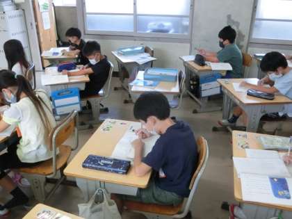 物語を初めて読んだ感想を書いていました。これをもとに、読み取りの学習が始まっていきます。