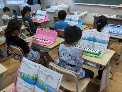 鍵盤ハーモニカを演奏したり、リズム打ちをやったりしていました。