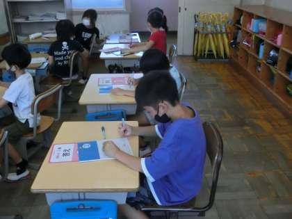 「算数の友」やその解答に記名しています。2年生ですから、自分の名前を漢字で書けるようになってきている子も多いようです。