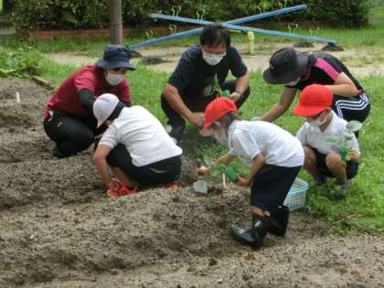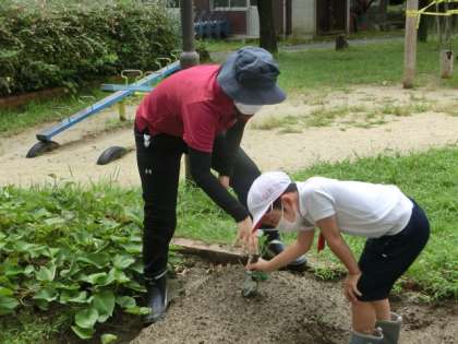 地域講師の大橋さんに来ていただき、6日(火)に購入した苗を植えました。