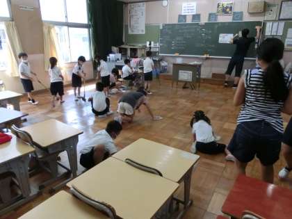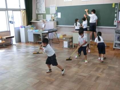 北校舎1階の掃除の時間の様子です。