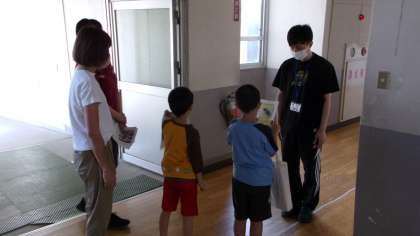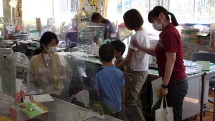 来週、6,7,8,9組で、エコたわしやさんを開きます。いろいろな先生たちに、その宣伝活動をしていました。