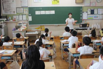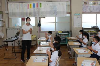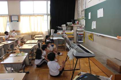 子犬のビンゴでリズムに合わせて、手拍子を打っていました。お祭りのいろいろなリズムを先生の手本をまねしていました。