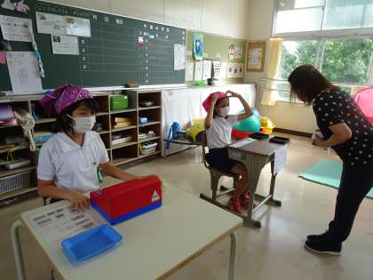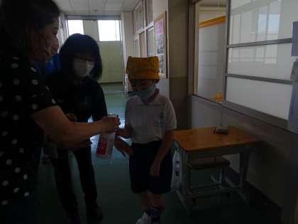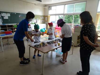 6789組の子どもたちが、自分の役割を一生懸命に務めていました。「かっこいいたわし」「かわいいたわし」「おしゃれなたわし」が並んでいて、どれにしようかなあとわくわくしながら選びました。