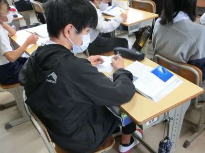 心に残った場面を紹介しあうようです。こららは、そのためのカードを作っている様子です。