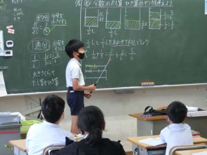 分母が異なる分数のたし算の方法を考えています。