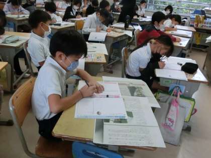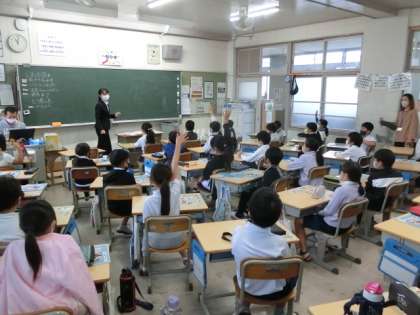 教育実習生の研究授業です。子どもたちが一段と張り切って学習に取り組んでいました。