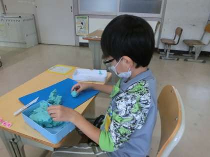 粘土で作品を作っていました。よく集中していました。