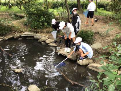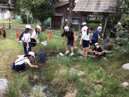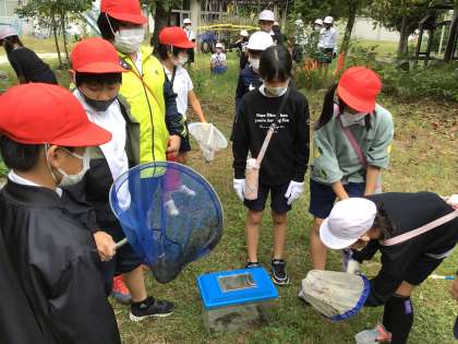 校内のビオトープの環境を整えるため、増えすぎたザリガニを捕獲。たくさんのザリガニを捕まえるこに成功しました。