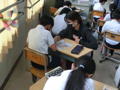 絵の中からアルファベットを探していました。英語に慣れ親しむ活動の1つです。