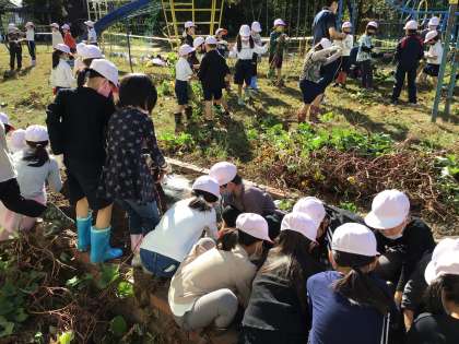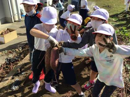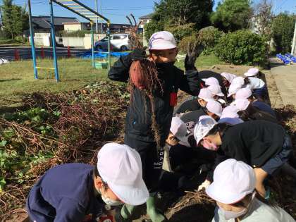生活科で育てた「さつまいも」の収穫です。思ったより大きくて、ビックリ!!どんな風に食べようか、楽しみですね。