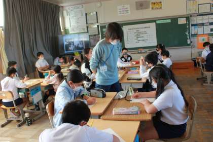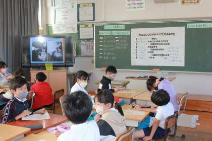 教育実習生による保健の授業が行われました。かむことの大切さについて、学ぶことができました。