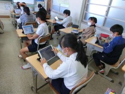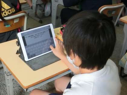 ニュース番組ができるまでの過程を学習していました。タブレットを使って、ノート(記録)をとっています。