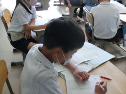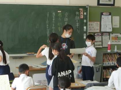 それぞれで物語を作っていました。この授業では、会話文や様子を表す言葉がポイントでした。