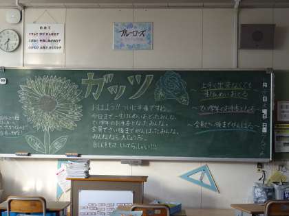 まずは、当日朝、教室の黒板に書かれていた担任の先生からのメッセージです。