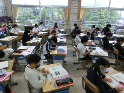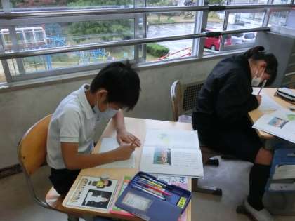 説明文の一部を読み取り、内容を整理していました。今日は、昨年度、パラリンピックで話題になったボッチャについて書かれている部分です。