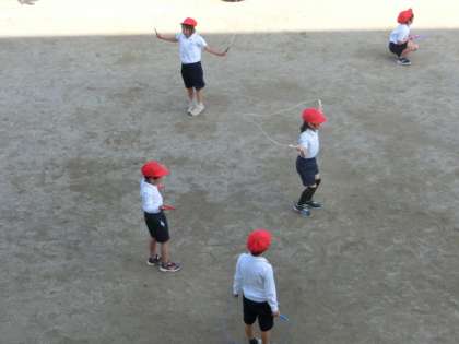 縄跳びの練習を始めていました。