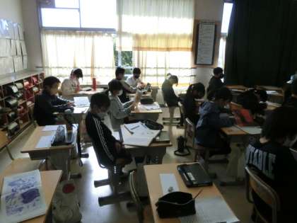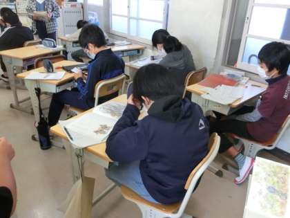 「ヒロシマのうた」の学習をもとに、戦争に関する本を読み、書評を書いていました。タブレットも活用しています。