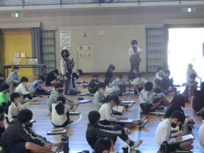 放流前の講師の方のお話の様子です。いろいろな質問にも答えていただきました。