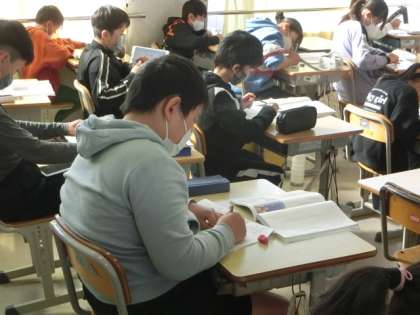 「ヒロシマのうた」の学習をもとに、キャッチコピー・あらすじ・感想などを考えながら、書評を書いていました。タブレットも活用している子がいました。