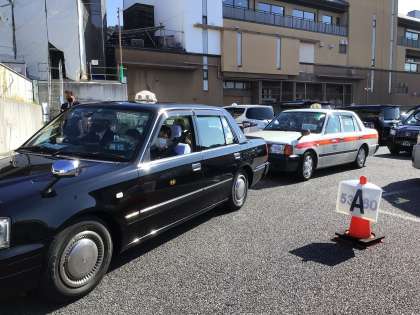 グループ行動です。お土産を買った後は、タクシーで京都見学をします。