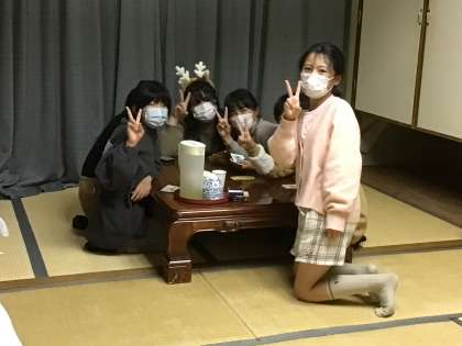 クラスごとにお風呂に入りました。部屋で、振り返りを書いたり、遊んだりして、楽しい時間を過ごしています。