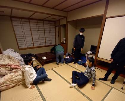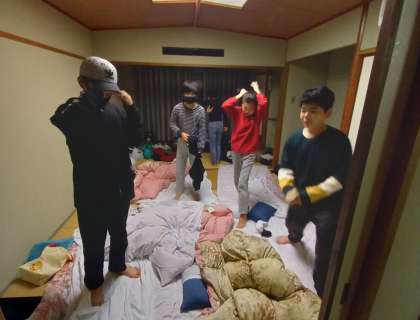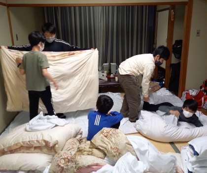 ふとんを片付け、身のまわりを整理している様子です。みんな元気です。