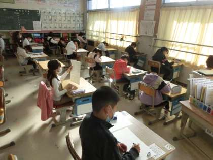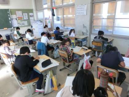 月曜日に行われた月例テストの様子です。みんな真剣に問題に向き合っています。