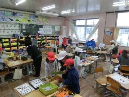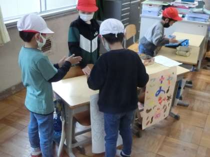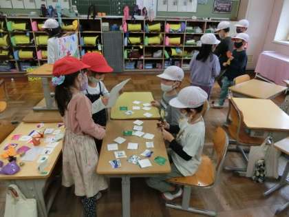2クラス合同で行っていました。お店屋さん形式で、店員さんとお客さんを、途中で交代します。楽しい遊びがいっぱいそろっていました。