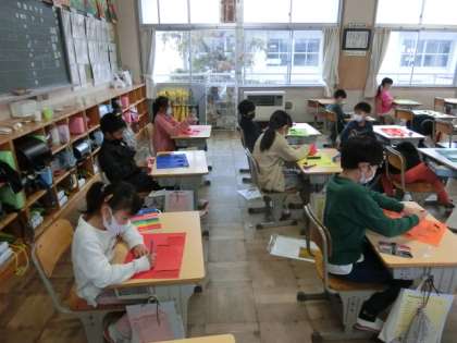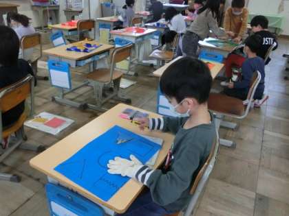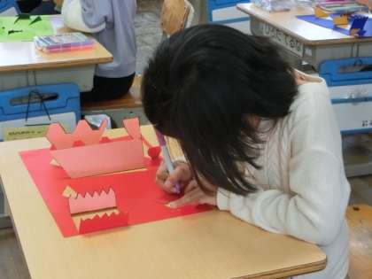 カッターナイフを使って、窓を切ります。どんな作品ができあがるか楽しみです。