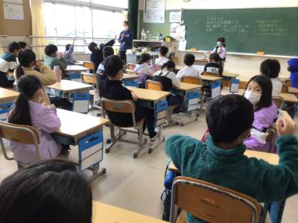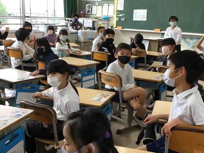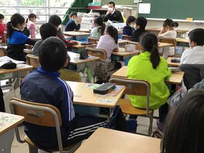 どのクラスも落ち着いた雰囲気の中、朝の会をしています。日朝の子のスピーチを聞いたり、質問をしたりしています。