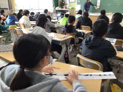 書き初め練習の準備をしたり、冬休みの課題の説明を聞いたりしました。