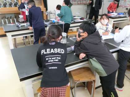 水を熱するとどうなるのか、時間の経過と温度変化とともに、その様子を実験で確かめていました。
