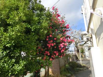 サザンカが次々に開花しています。