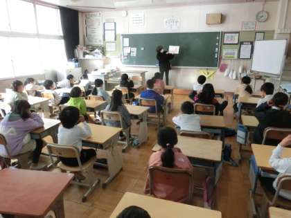 低学年で読み聞かせが行われました。プルプルの皆様、ありがとうございました。