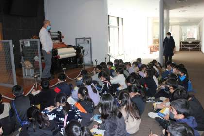 バスに乗って鞍ヶ池記念館見学に行きました。社会で学習してる豊田喜一郎や豊田自動車の歴史など記念館でしか学べないことをしっかりメモする姿が見られました。
