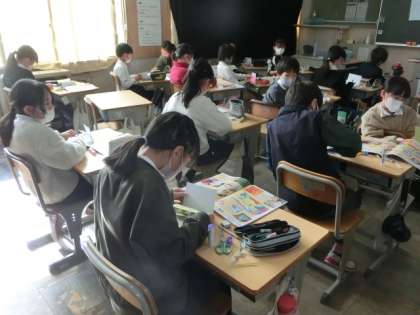 自分の読んだ本を紹介するリーフレットを作っています。みんな上手に作っています。誰に見てもらうのかな?