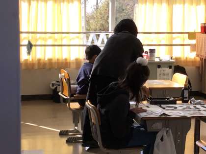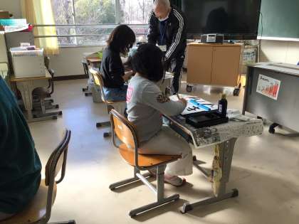 どの子も、お手本をよく見て、一生懸命書きました。