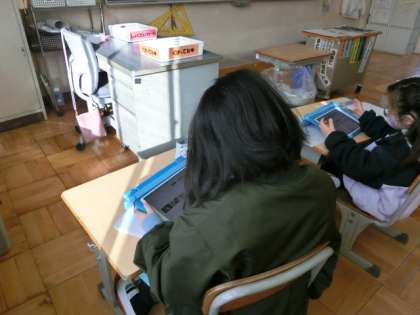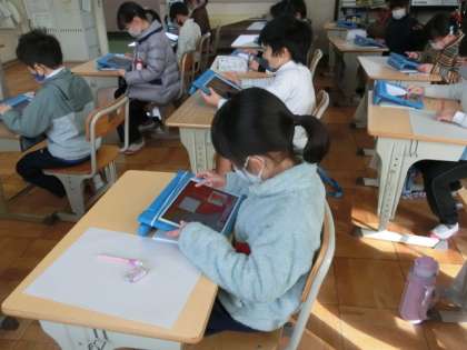 。タブレットでもととなる写真を検索しながら、紙版画の下絵を考えていました。