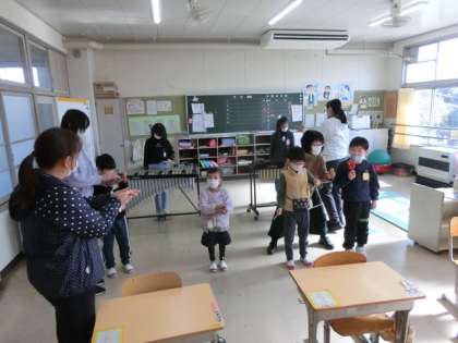 楽器ごとに分かれてパート練習を行い、その後、みんなで合奏しました。上手に演奏できました。