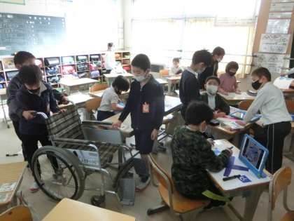 タブレット、模造紙、車いすの実物なども使いながら、発表方法を工夫していきます。