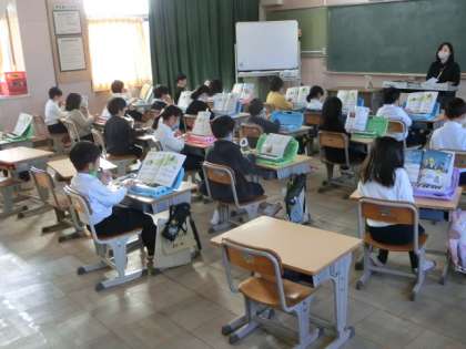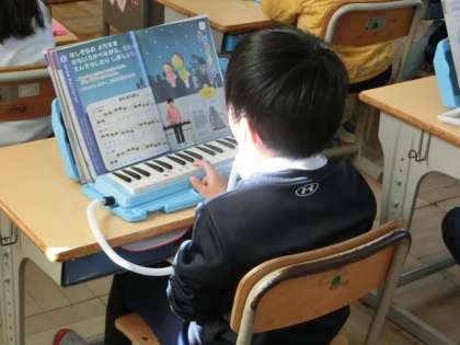 鍵盤ハーモニカで「きらきらぼし」を演奏していました。