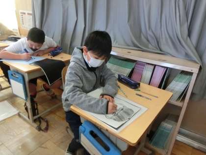 板に下絵を描いて(写して)いました。