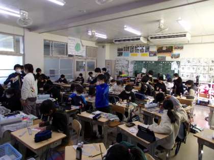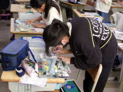 こちらは、2組の様子です。とてもていねいに描いていました。力作ぞろいです。