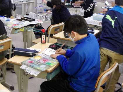 6の2学活「絵手紙 〜寒中見舞い〜」