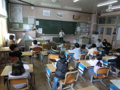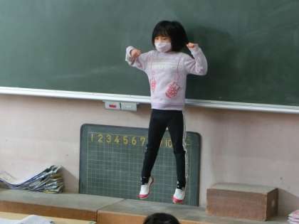 音読発表会をしていました。身ぶり手ぶりをつけて読む子もいました。