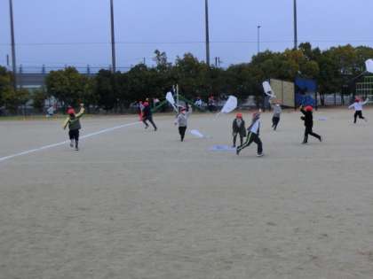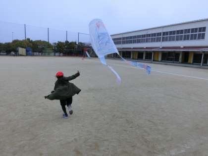 先週に行われた凧揚げの様子です。運動場が広く使えて、ある程度風が強い日をねらって、凧揚げをしているのだそうです。
