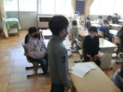 聞き方のポイントをみんなで確認してから、一人ずつのスピーチを聞いていました。誰かを紹介するのですが、家族や親戚を紹介する子が多くいました。