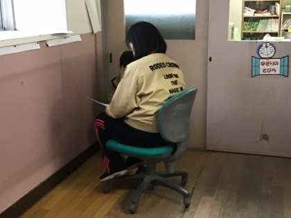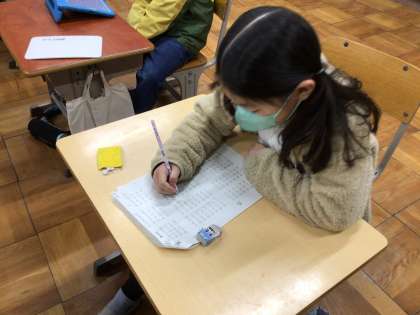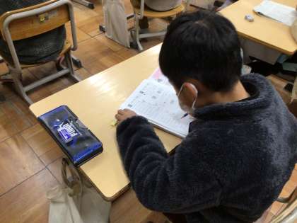 1年生も静かに勉強できます。算数の友やプリントで復習しています。